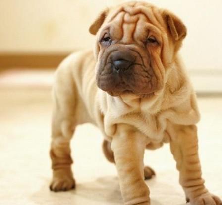 幼時的沙皮犬和其它品種的幼犬有著截然不同的風格,整個狗狗都被松弛的皮膚和褶皺包裹著,遠遠的看去就像一坨“行走的抹布”,隨著月齡的增大沙皮犬的褶皺更多的存在于面部或者臀部和肩部,所以沙皮犬有著非常“憂愁的”表情,總是表現出滿臉皺紋的“憂郁感”,其實它們歡快而活潑。