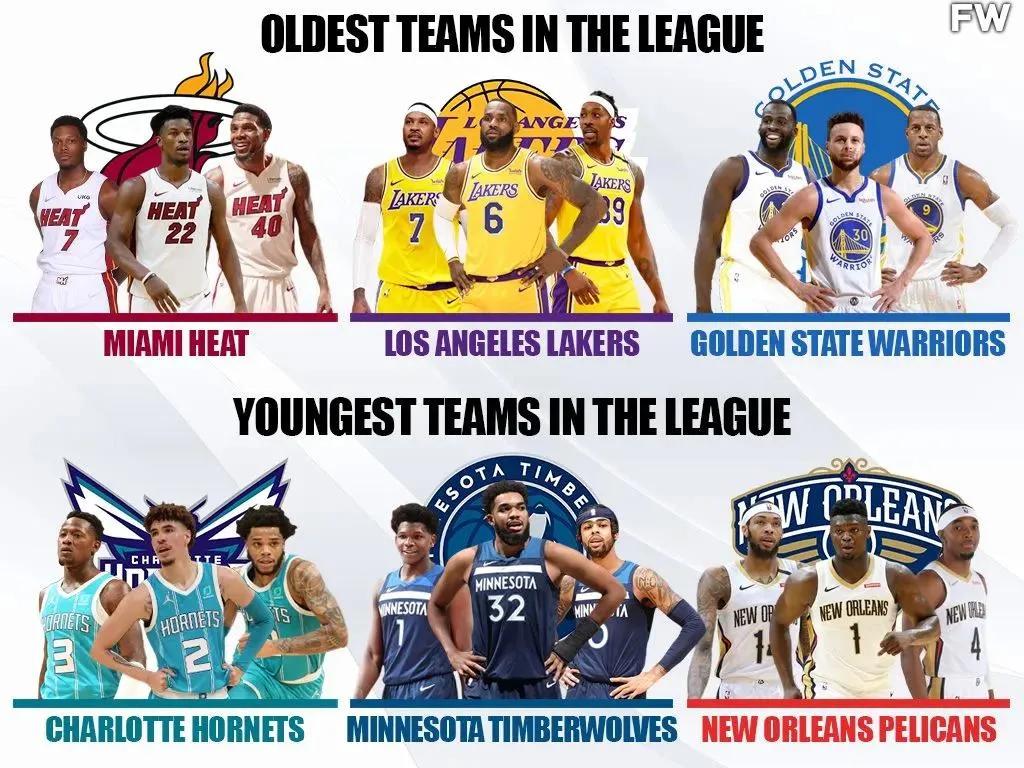我們已經很久沒有看到一支非常老或者非常年輕的球隊了,他們一路晉級季后賽,拿到了總冠軍。隨著大批老將抱團,試圖在職業生涯末期最后一次奪冠,這也讓一些球隊的平均年齡居高不下,成為聯盟中年齡最大的球隊。因此《Fadeawayworld》的作者圖也列出了2021-2022賽季最老和最年輕的十支球隊。
