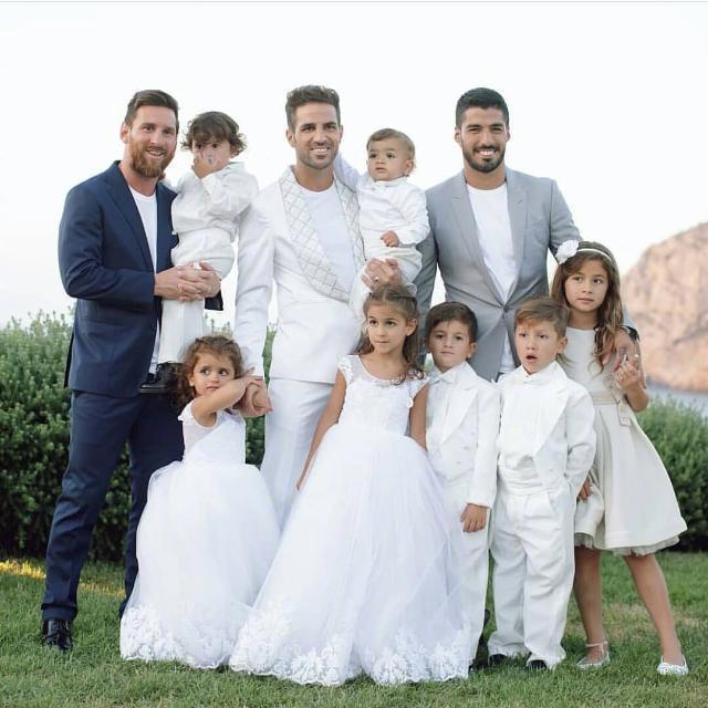 7 / 8 法布雷加斯與多年女友丹妮埃拉舉行了盛大的婚禮。不少球員都帶著家人參加了小法的婚禮。梅西、蘇神也在其中,這三個(gè)超級奶爸帶著一大群孩子,畫面真美!更多圖片: ?