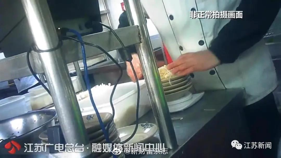 1 / 3 3月4日,一名工作人員沒有戴手套,直接在切配間的菜板上切西瓜,旁邊的案子上另一個工作人員正在殺魚,切好的西瓜沒有任何防護措施,就放在切配間的架子上。知情人告訴記者,他通過詢問配菜員得知,香菇、娃娃菜、金針菇等菜清洗后不容易保存,而且洗后不好看,所以上桌前往往會在菜品上噴點水。