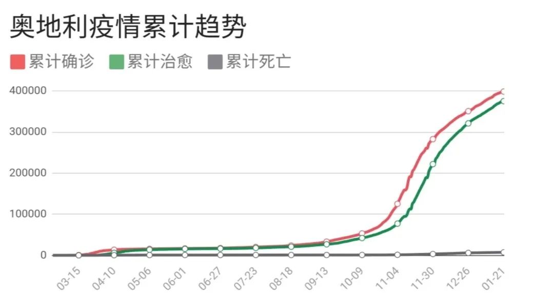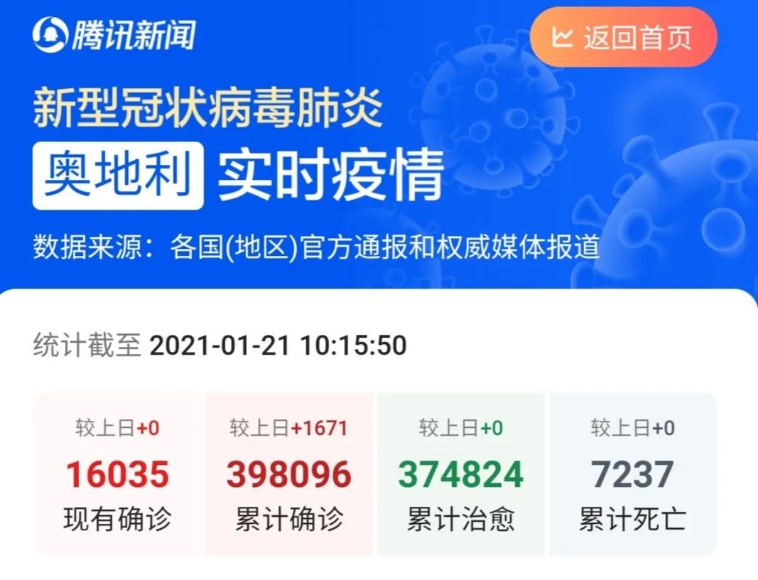 截至1月21日10:15分,奧地利累計(jì)確診398096例,累計(jì)死亡7237例。