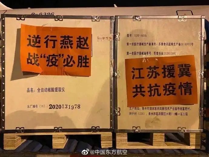 “江蘇援冀,共抗疫情。”